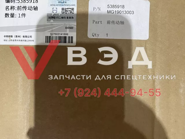 Кардан привода MG19013003 5385918. Оригинальная запчасть. Применимость - Грейдеры SEM.
